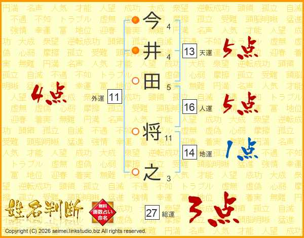 今井田将之さんの天運は13画の5点!