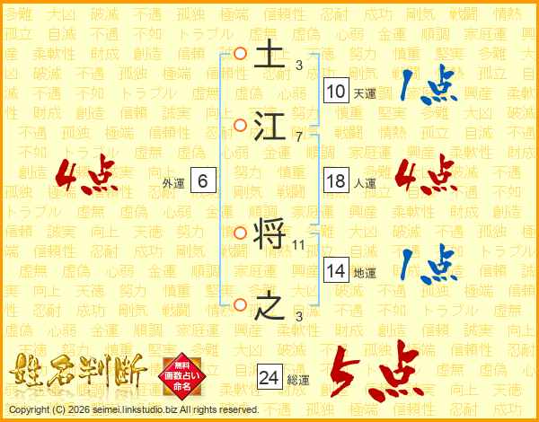 土江将之さんの総運は24画の5点!