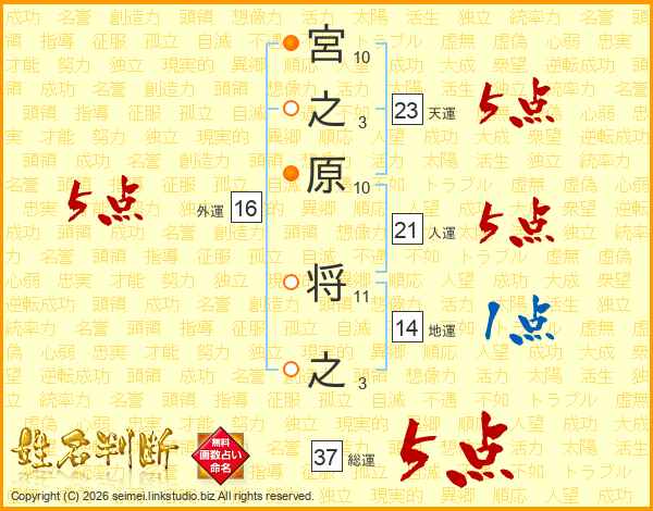 宮(10画)之(3画)原(10画) 将(11画)之(3画)