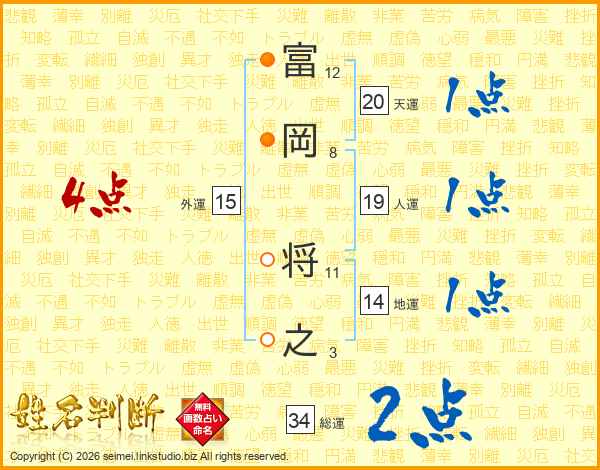 富岡将之さんの総運は34画の2点!