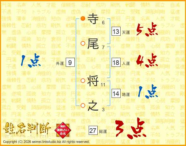 寺尾将之さんの総運は27画の3点!