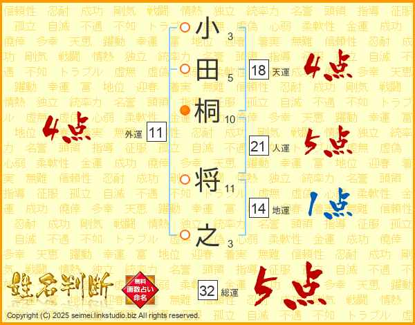 小(3画)田(5画)桐(10画) 将(11画)之(3画)