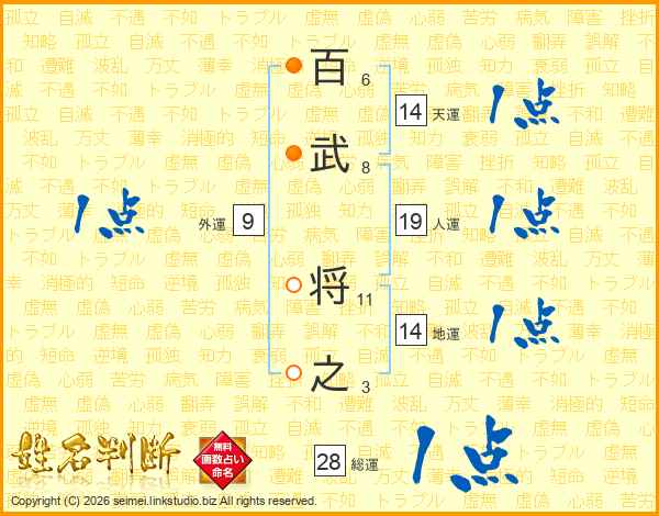 百武将之さんの地運は14画の1点!