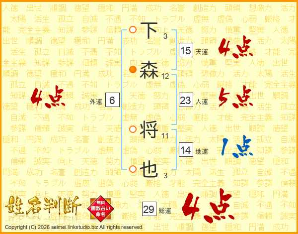 下森将也さんの総運は29画の4点!