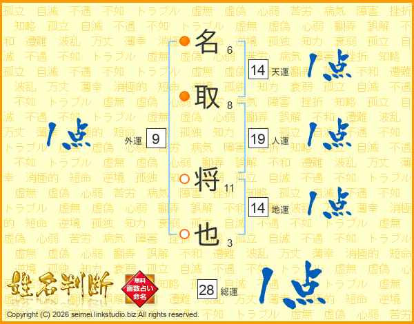 名取将也さんの天運は14画の1点!
