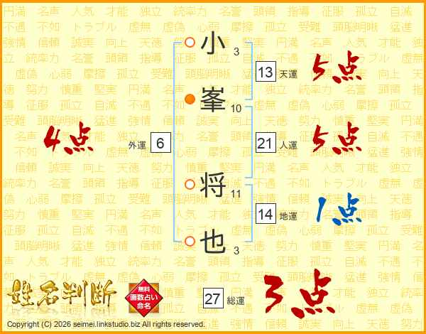 小峯将也さんの総運は27画の3点!