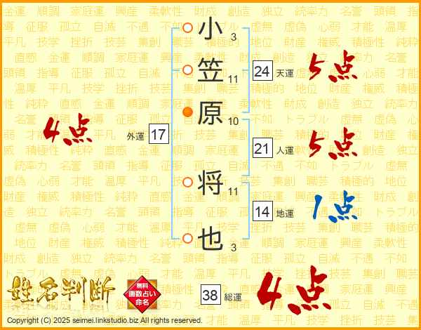 小笠原将也さんの外運は17画の4点!