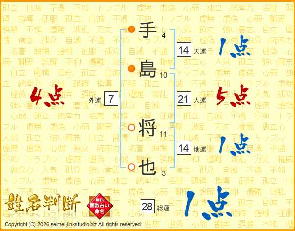 手島将也さんの地運は14画の1点!