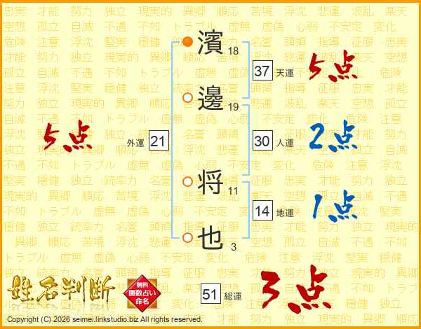濱邊将也さんの天運は37画の5点!