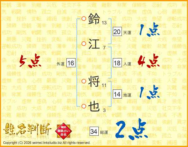 鈴江将也さんの外運は16画の5点!