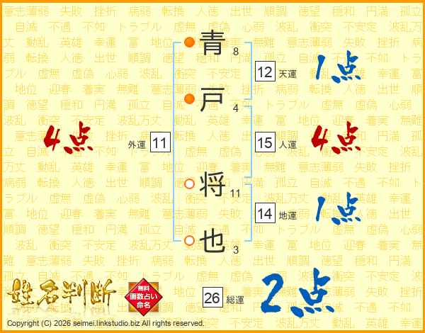 青戸将也さんの総運は26画の2点!