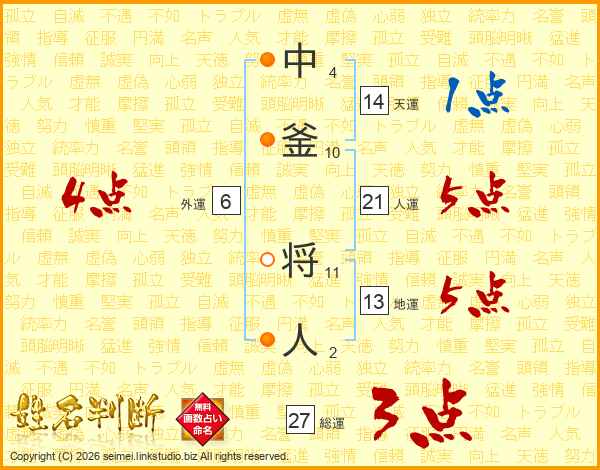 中釜将人さんの総運は27画の3点!