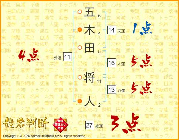 五(5画)木(4画)田(5画) 将(11画)人(2画)