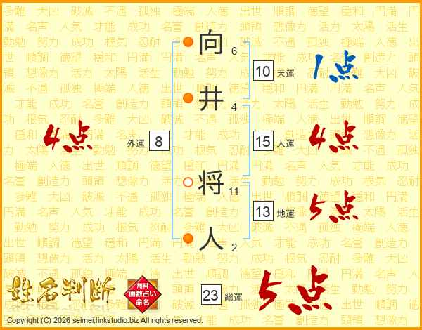 向井将人さんの総運は23画の5点!