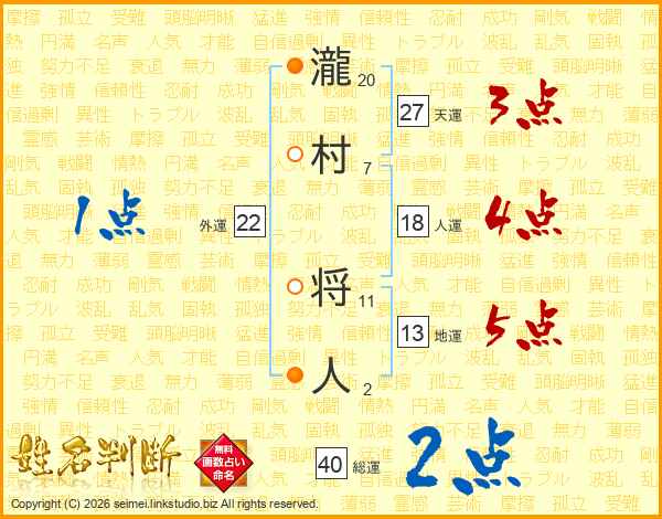 瀧村将人さんの総運は40画の2点!