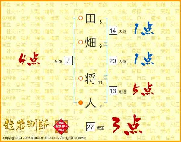 田畑将人さんの総運は27画の3点!