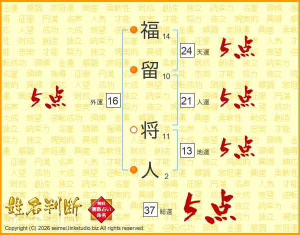 福留将人さんの外運は16画の5点!