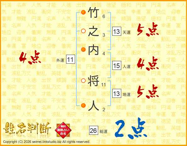 竹之内将人さんの総運は26画の2点!