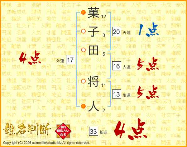 菓(12画)子(3画)田(5画) 将(11画)人(2画)