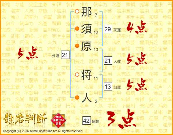 那須原将人さんの人運は21画の5点!