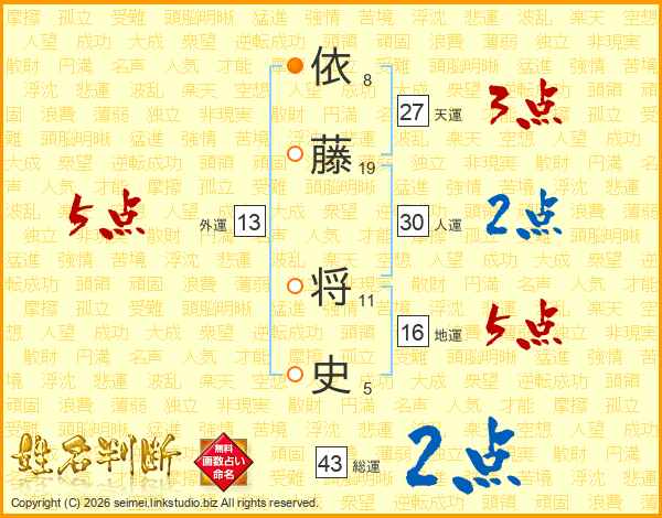 依藤将史さんの総運は43画の2点!