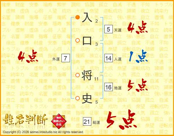 入口将史さんの総運は21画の5点!