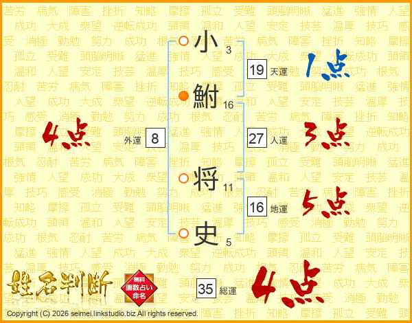 小鮒将史さんの総運は35画の4点!