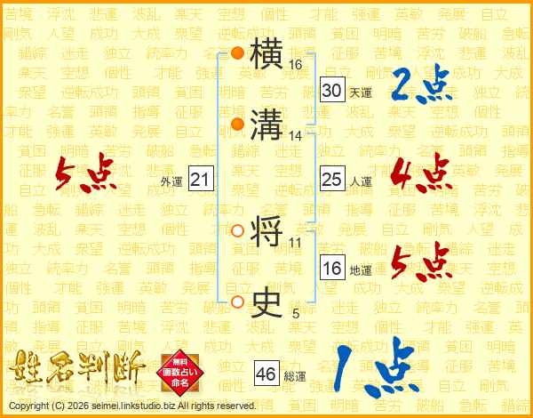 横溝将史さんの人運は25画の4点!