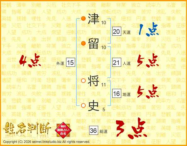 津留将史さんの総運は36画の3点!