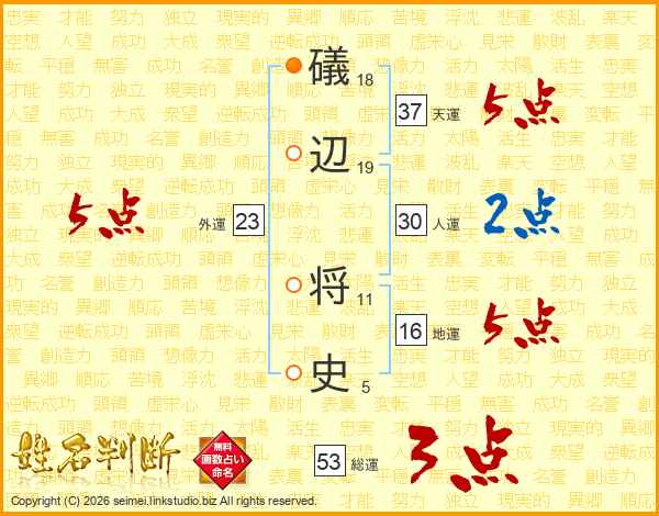 礒辺将史さんの天運は37画の5点!