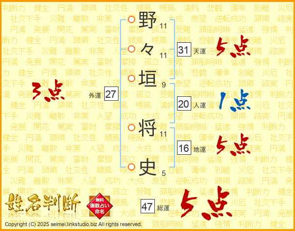 野々垣将史さんの総運は47画の5点!