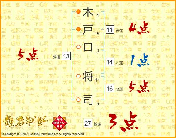 木戸口将司さんの総運は27画の3点!
