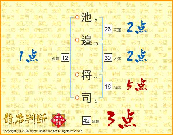 池(7画)邉(19画) 将(11画)司(5画)