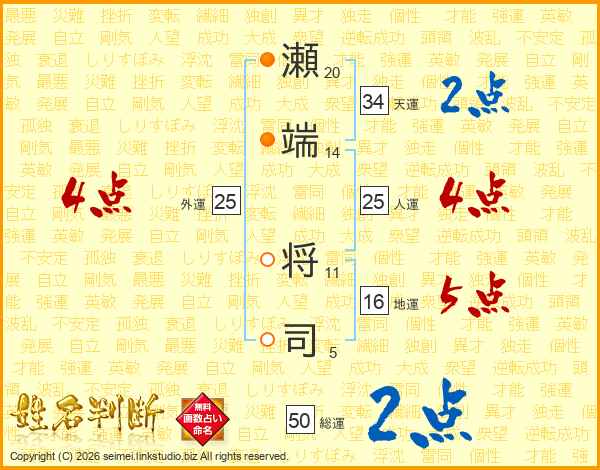 瀬端将司さんの人運は25画の4点!