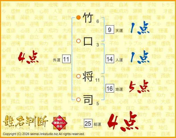竹口将司さんの総運は25画の4点!