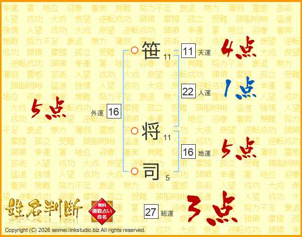 笹将司さんの総運は27画の3点!