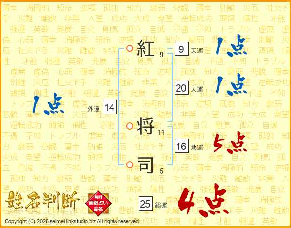 紅将司さんの人運は20画の1点!