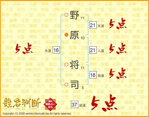 野原将司さんの天運は21画の5点!
