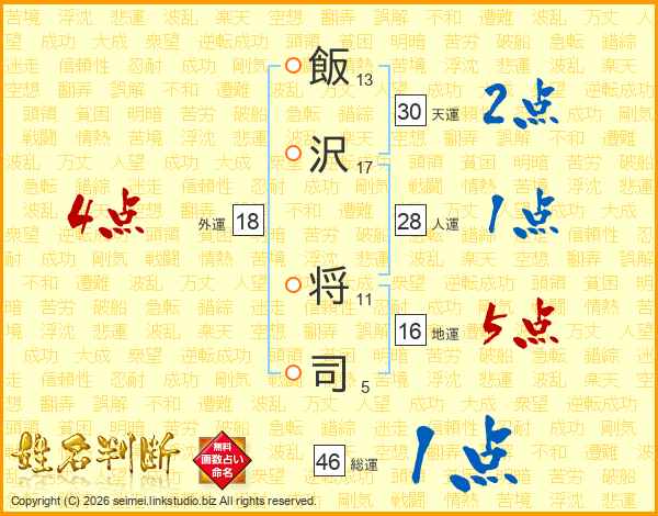 飯沢将司さんの総運は46画の1点!