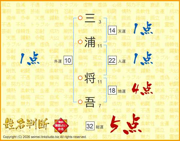 三浦将吾さんの総運は32画の5点!