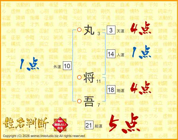 丸将吾さんの総運は21画の5点!