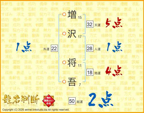 増(15画)沢(17画) 将(11画)吾(7画)