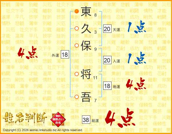 東久保将吾さんの総運は38画の4点!