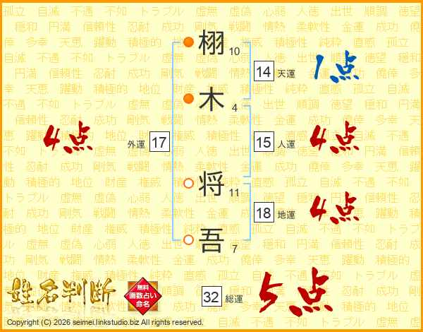 栩木将吾さんの総運は32画の5点!