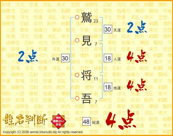 鷲(23画)見(7画) 将(11画)吾(7画)