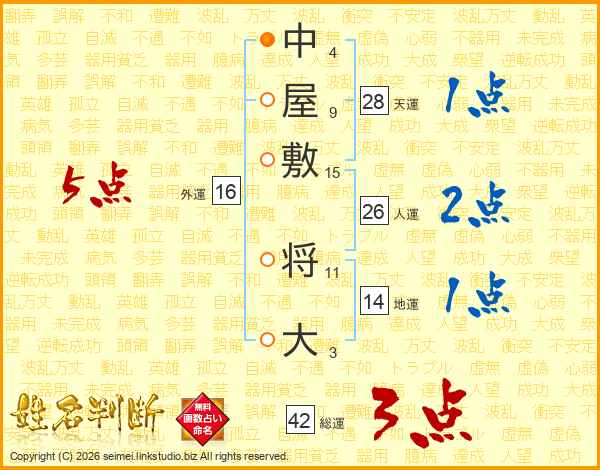 中屋敷将大さんの人運は26画の2点!