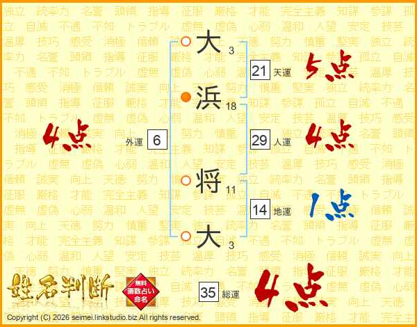大浜将大さんの総運は35画の4点!
