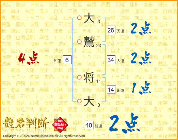 大鷲将大さんの天運は26画の2点!