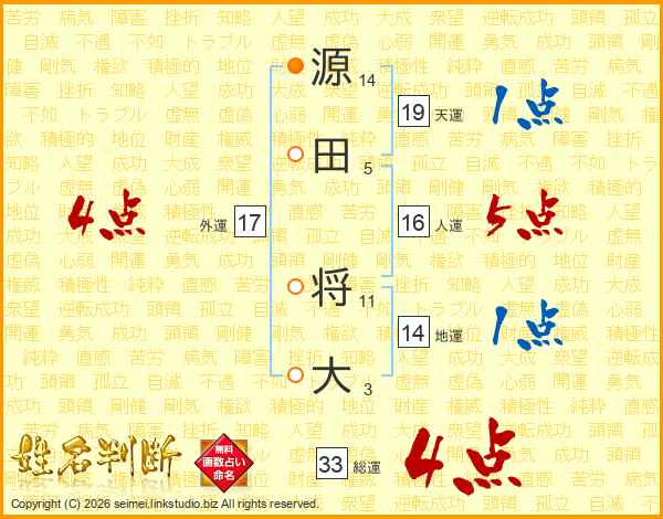 源田将大さんの総運は33画の4点!