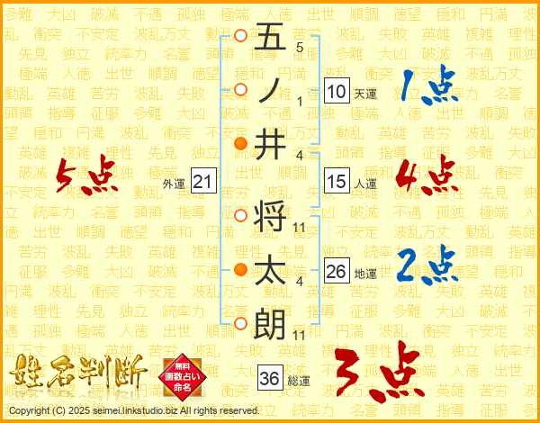 五ノ井将太朗さんの総運は36画の3点!